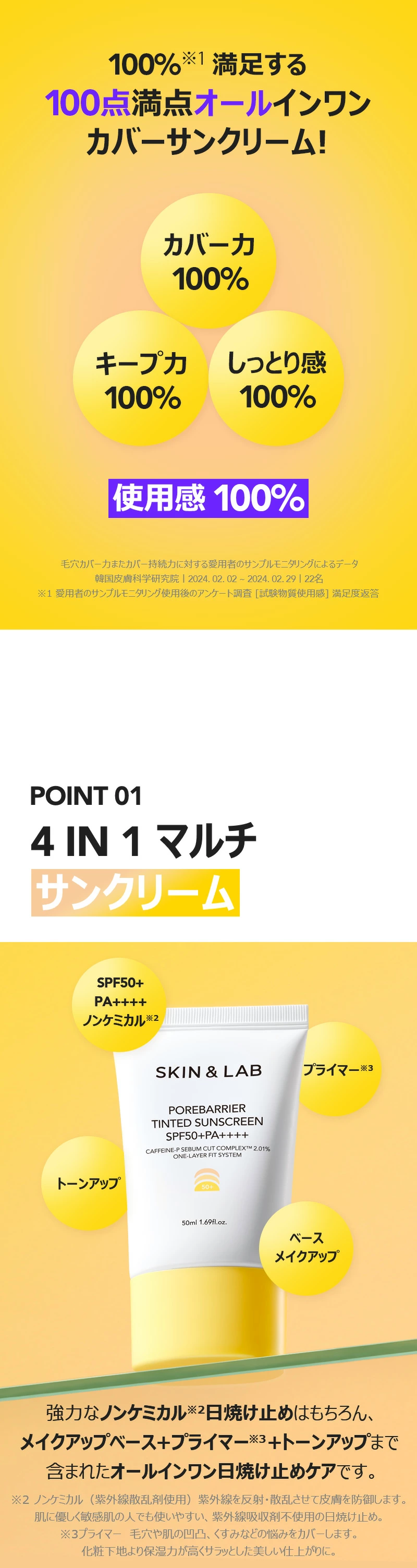 強力なノンケミカル日焼け止めはもちろん、メイクアップベース+プライマー+トーンアップまで含まれたオールインワン日焼け止めケアです。毛穴ケアに効果的なカフェインパウダーと多孔性パウダー複合体 が、過剰な皮脂を吸着しシルキーに仕上げ、浮き上がる毛穴の凹凸を埋めてなめらかな肌に仕上げます。